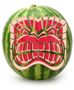 If the thought of Halloween pumpkin carving in June or July isn’t appealing, then try switching canvases. The Shaka or Fat Tiki stencils look just as good on a watermelon as they do on pumpkins. The Toothy and Crying Tiki faces are highly detailed and look just as good as any of the holiday-based styles currently available.